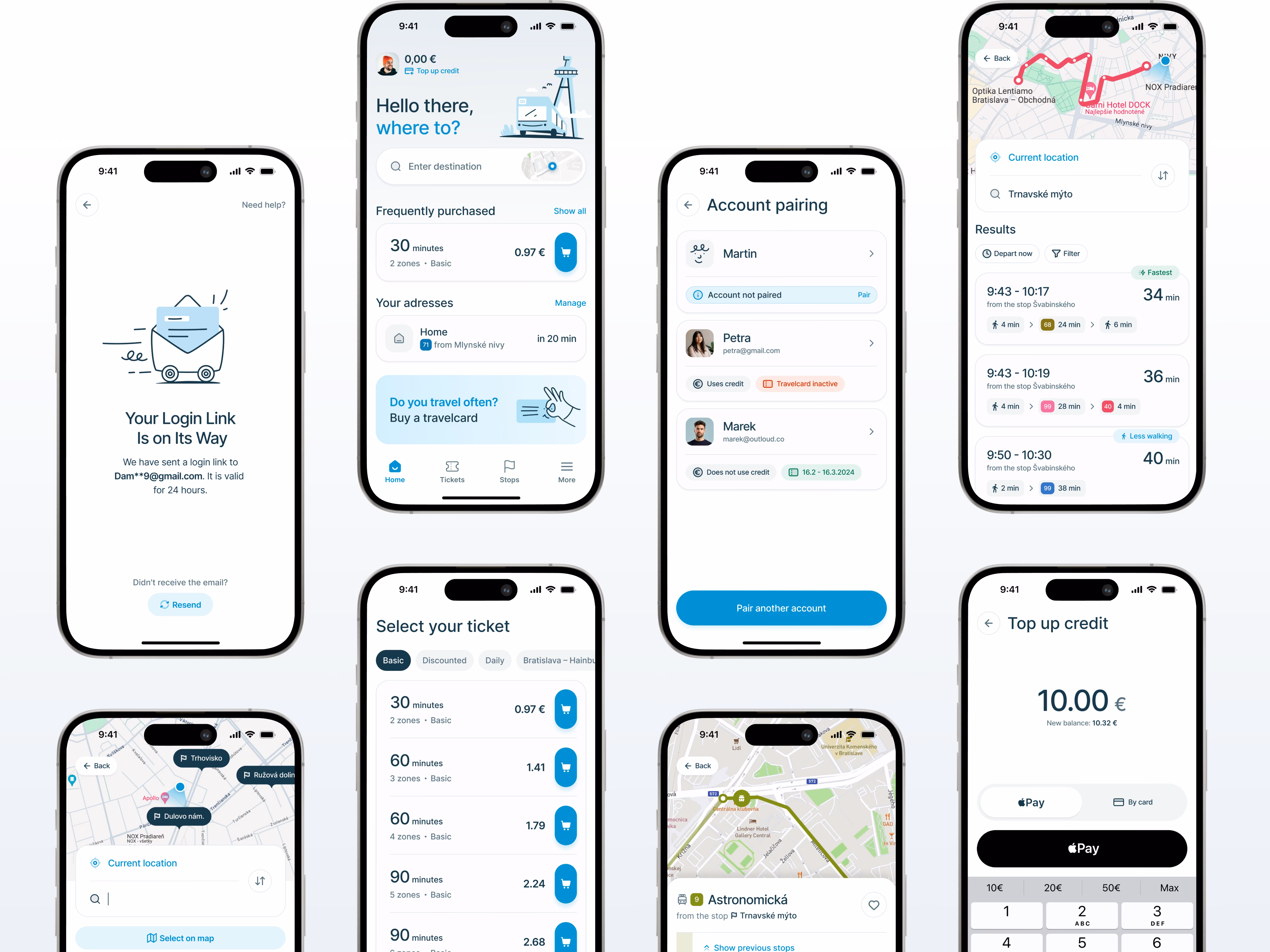 Those insights were then tested on wireframes before final UI work began, helping validate key journeys such as ticket purchase, route search, and registration-related flows early and more efficiently.